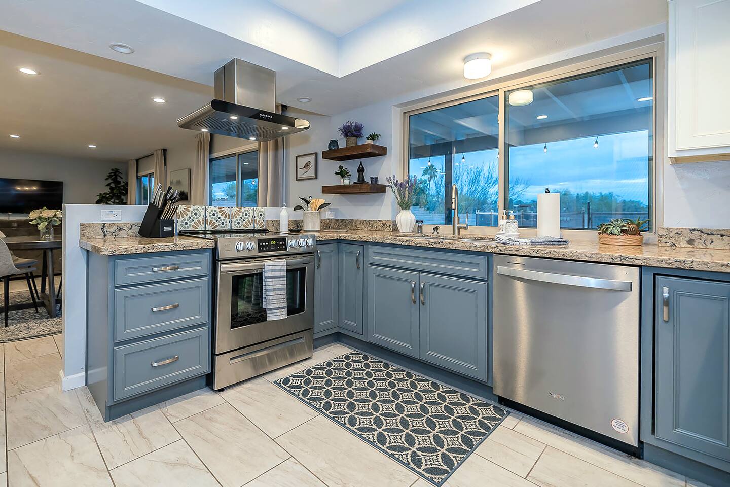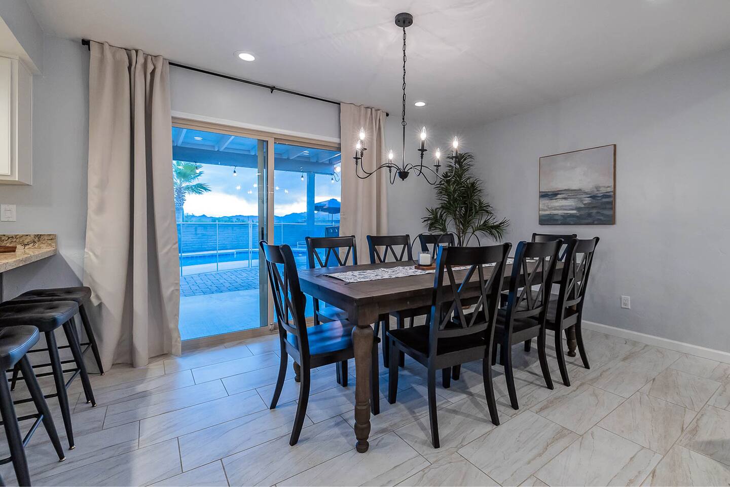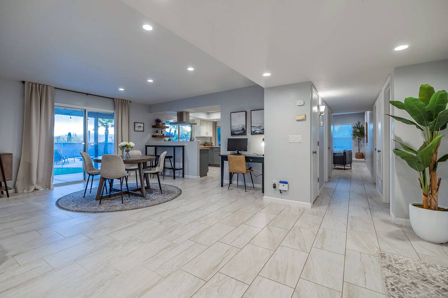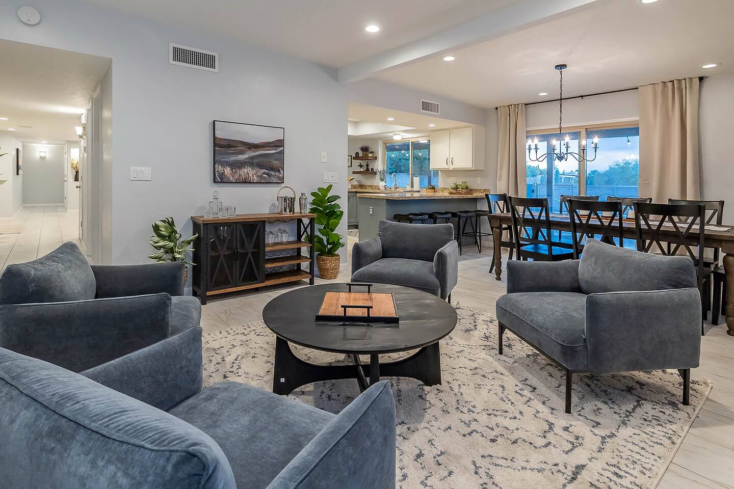 Gorgeous Tucson vacation rental with a heated pool. Our remodeled home has been professionally decorated with new furniture and appliances. The Master bedroom has a comfortable king bed, a dual vanity bathroom and shower. Each of the other individually styled bedrooms have comfortable/quality queen mattresses, sharing a full bathroom with a bathtub/shower combination. The layout of this house is great for up to 4 couples and family friendly. Private enclosed backyard is great!