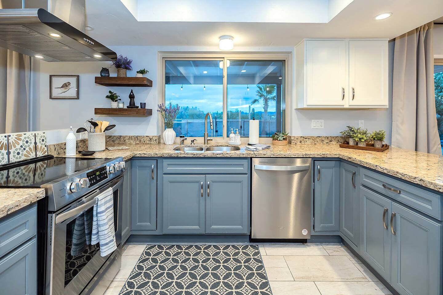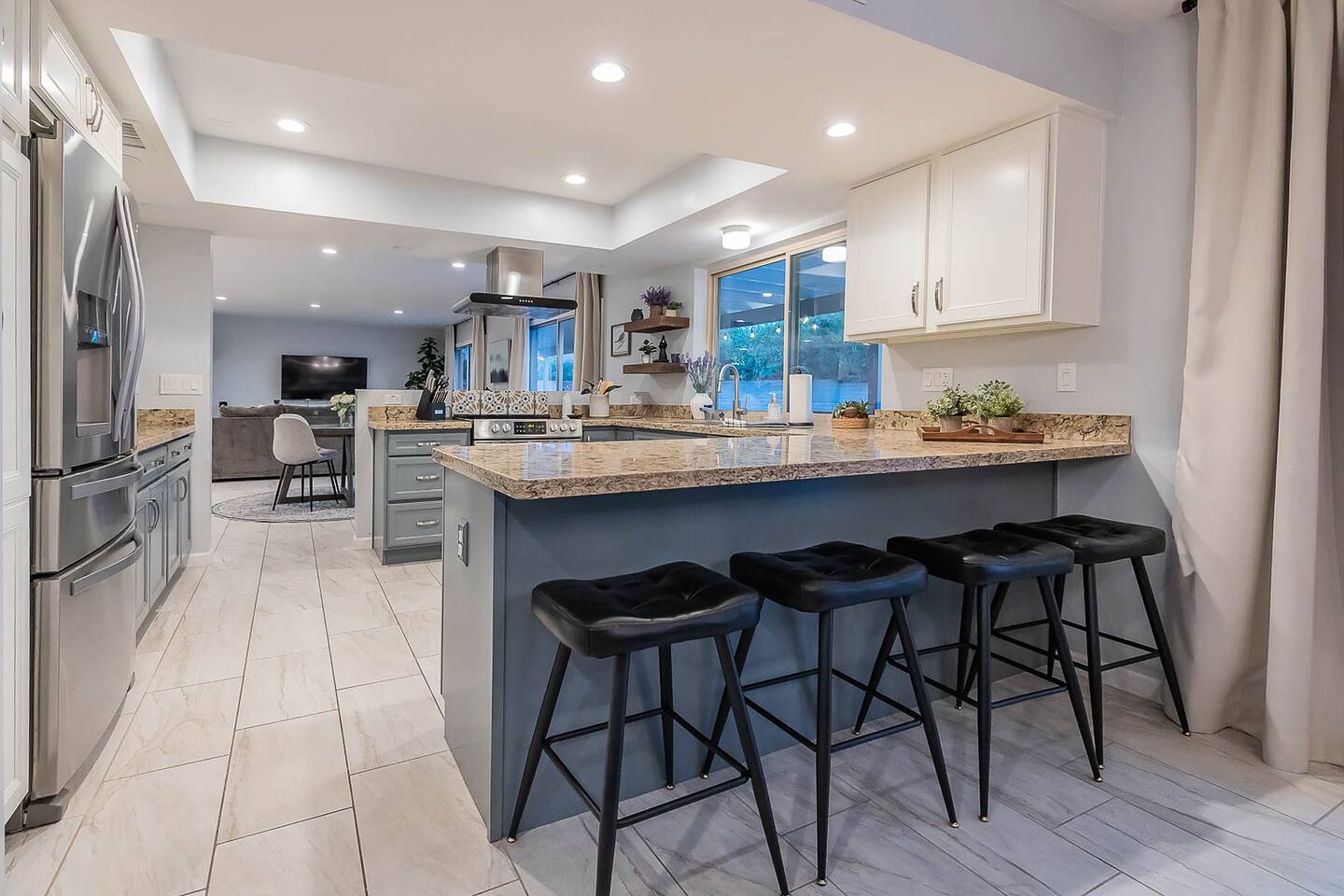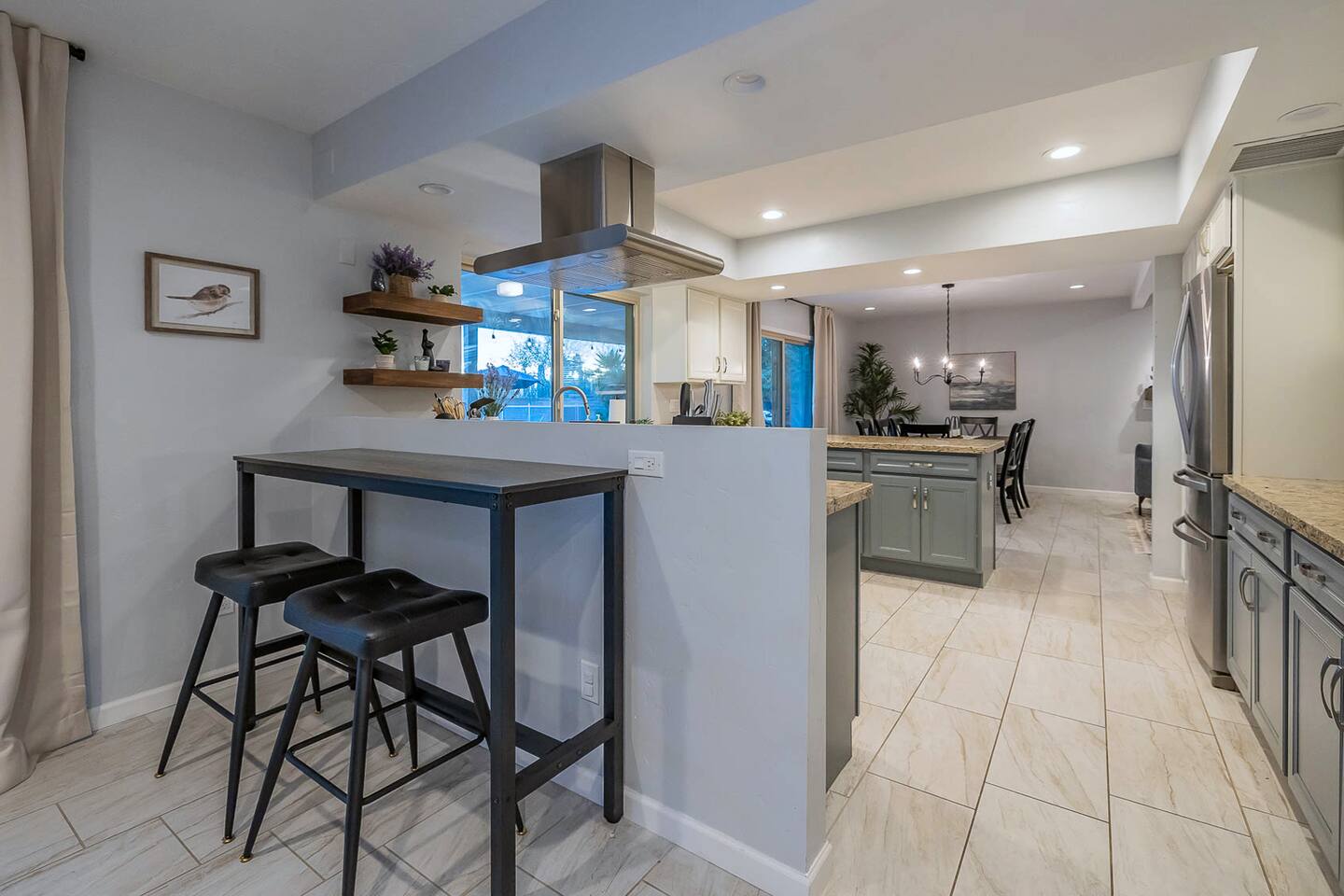 Gorgeous Tucson vacation rental with a heated pool. Our remodeled home has been professionally decorated with new furniture and appliances. The Master bedroom has a comfortable king bed, a dual vanity bathroom and shower. Each of the other individually styled bedrooms have comfortable/quality queen mattresses, sharing a full bathroom with a bathtub/shower combination. The layout of this house is great for up to 4 couples and family friendly. Private enclosed backyard is great!