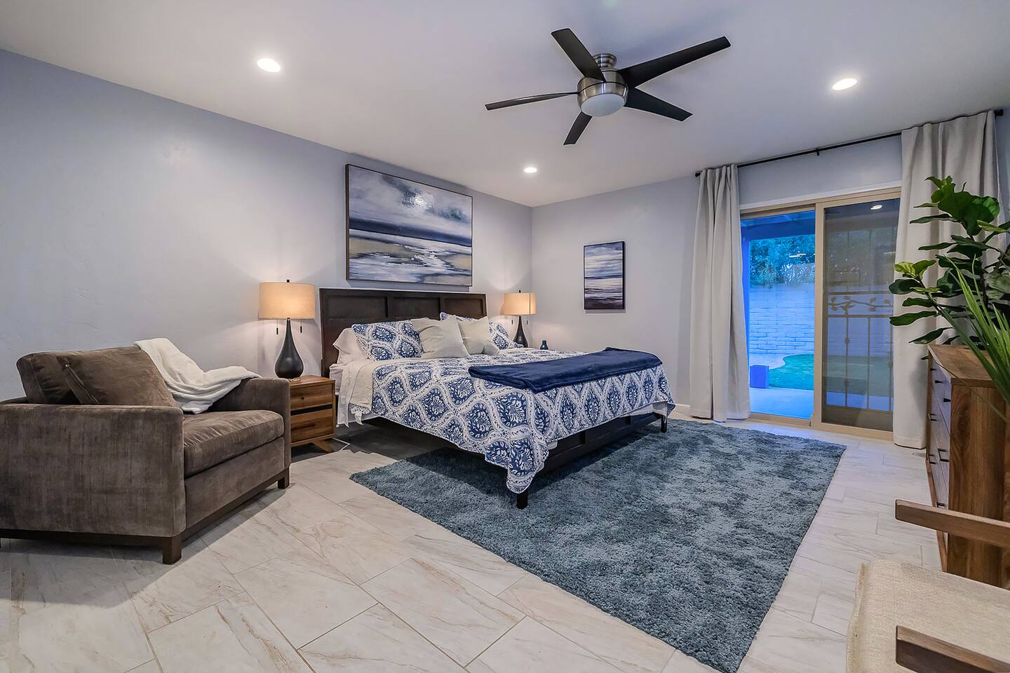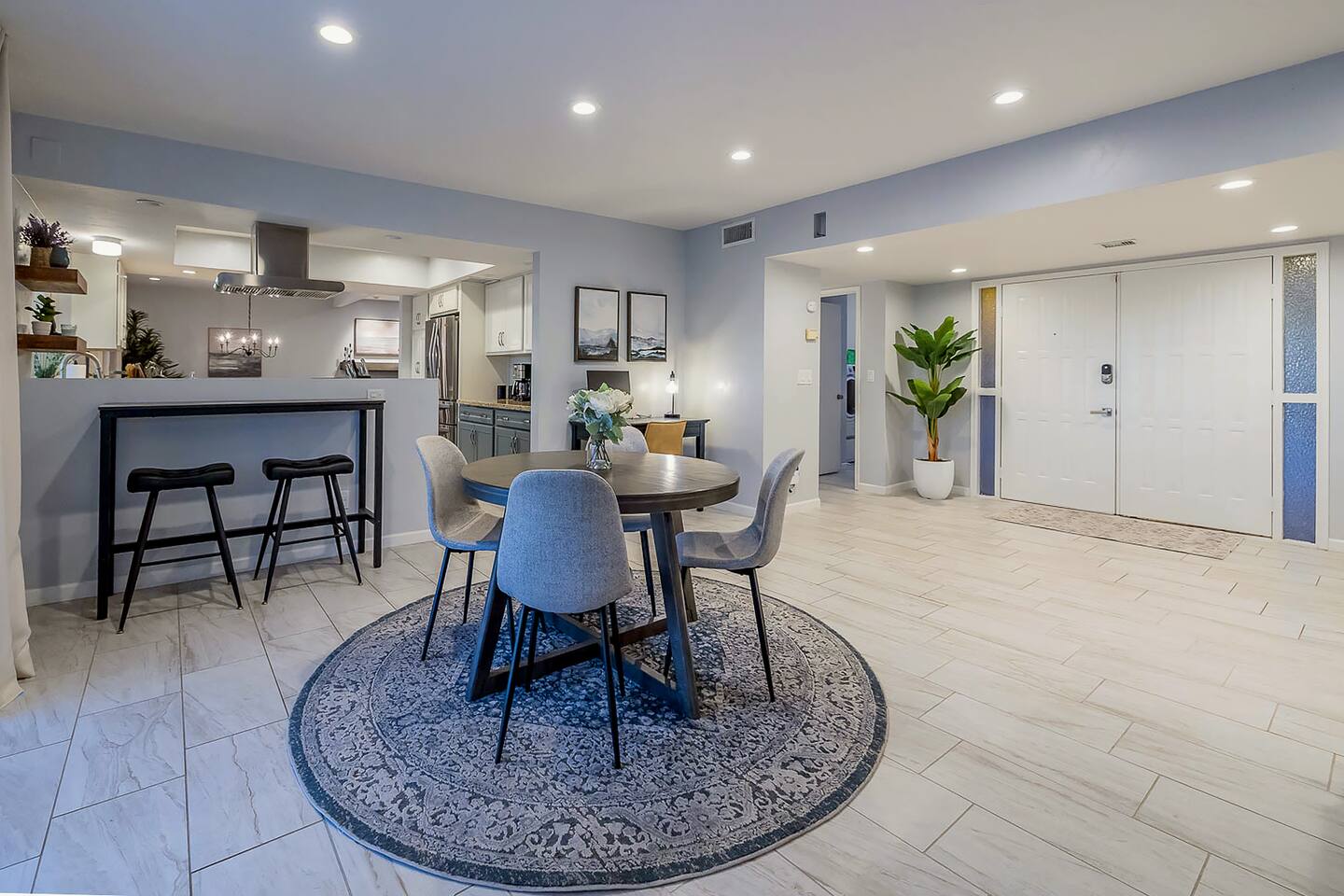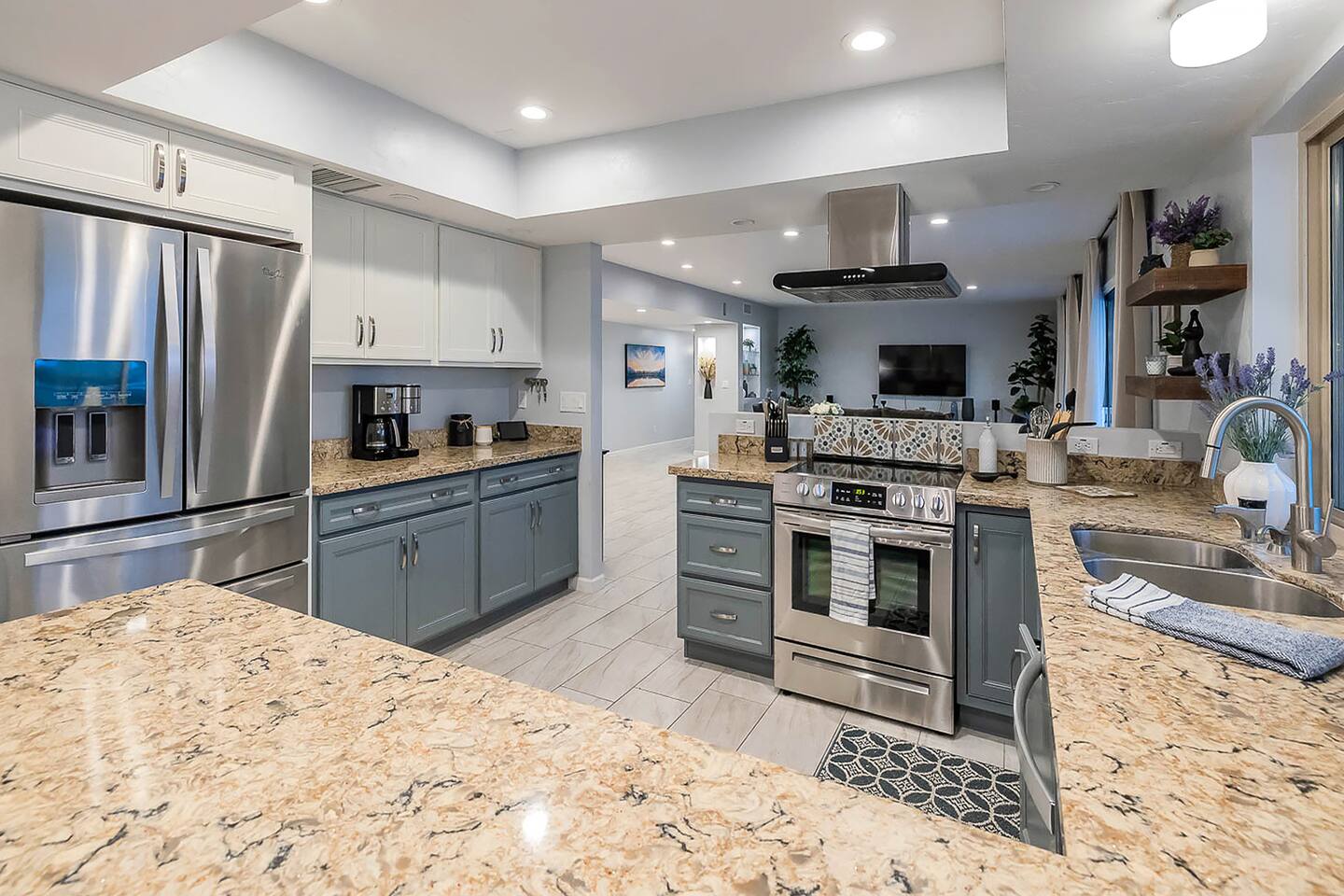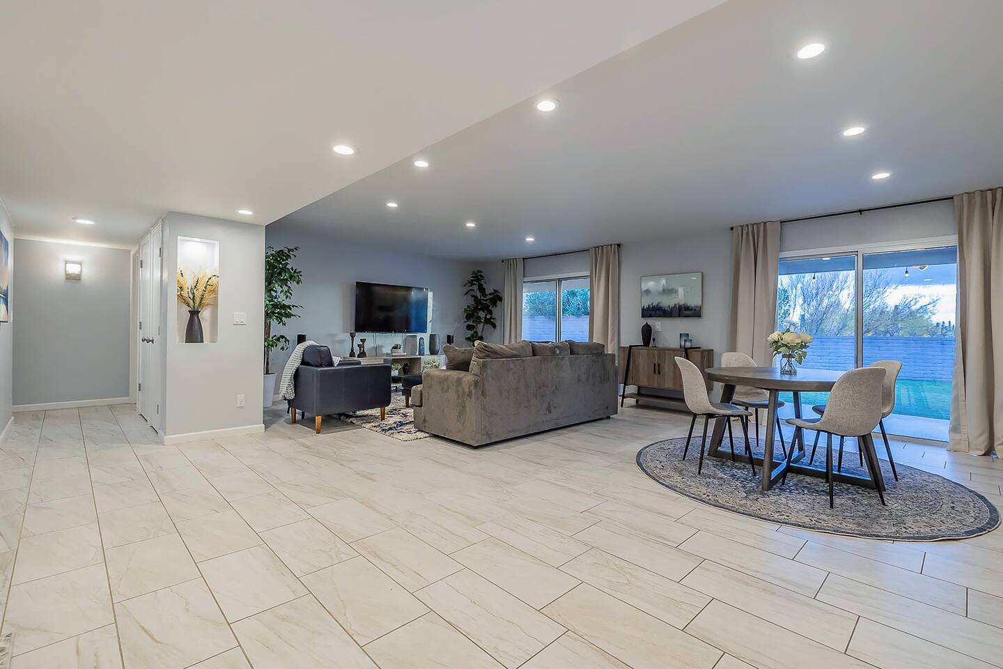 Gorgeous Tucson vacation rental with a heated pool. Our remodeled home has been professionally decorated with new furniture and appliances. The Master bedroom has a comfortable king bed, a dual vanity bathroom and shower. Each of the other individually styled bedrooms have comfortable/quality queen mattresses, sharing a full bathroom with a bathtub/shower combination. The layout of this house is great for up to 4 couples and family friendly. Private enclosed backyard is great!